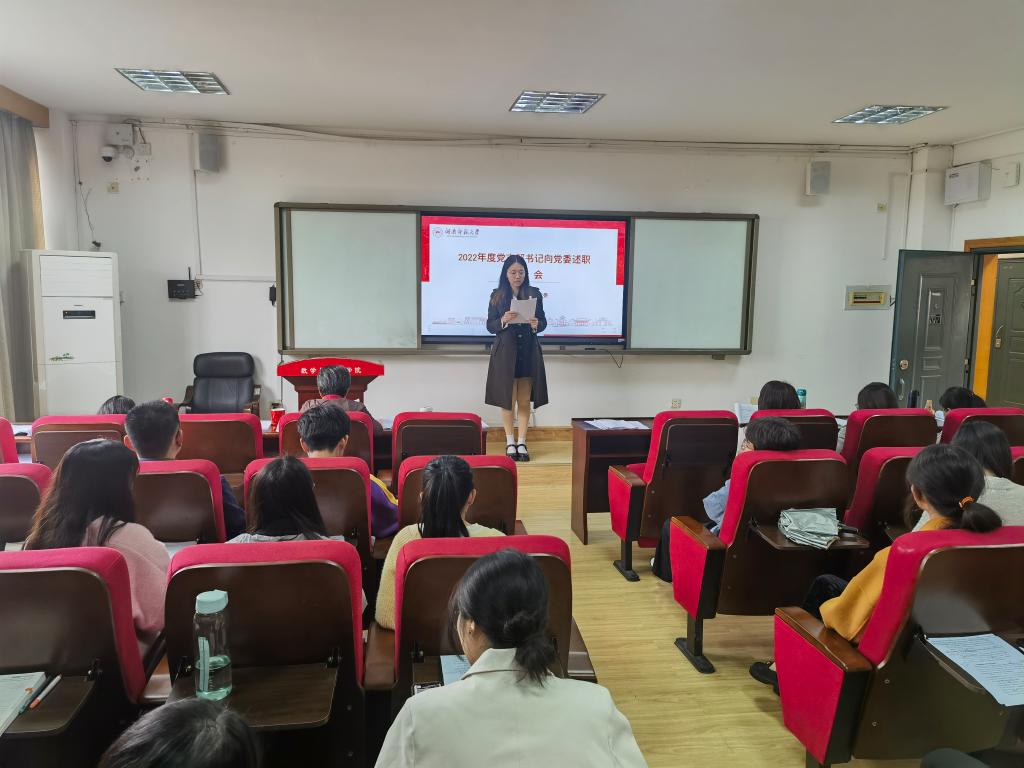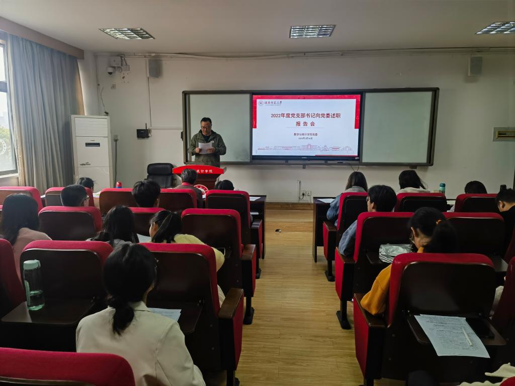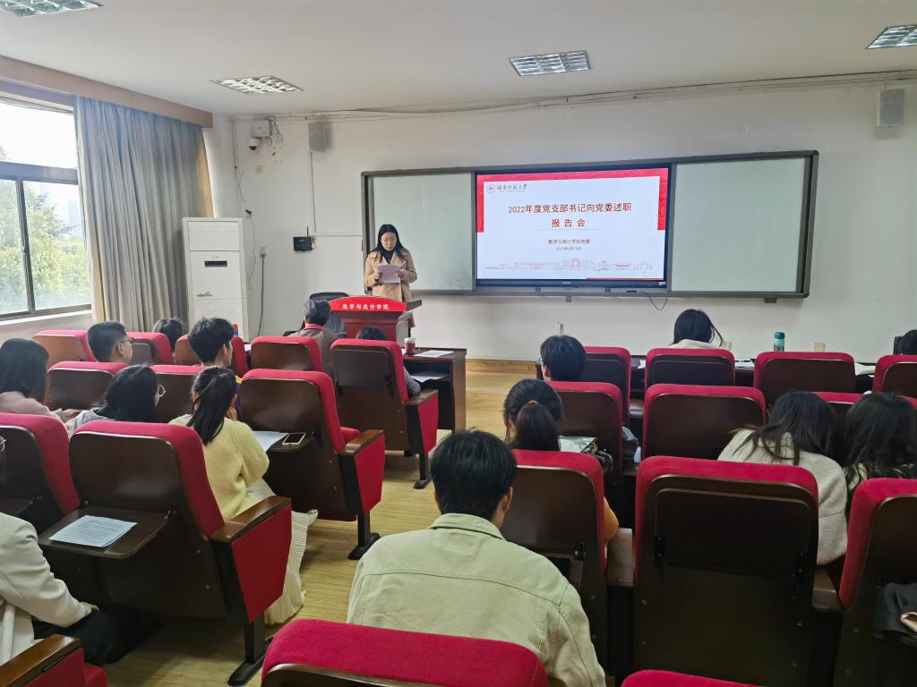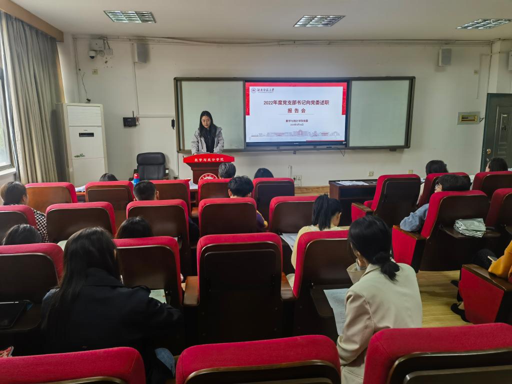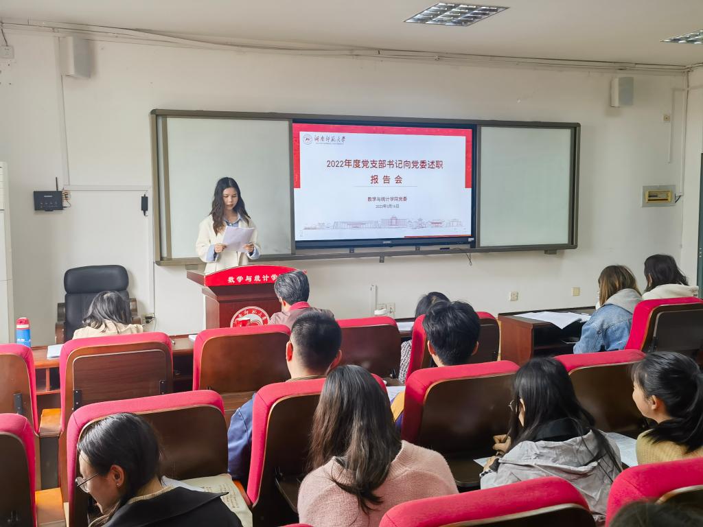 3月16日下午,数学与统计公司党委在307学术报告厅开展2022年度党支部书记向党委述职报告会。会议由公司党委专职组织员覃志斌主持。