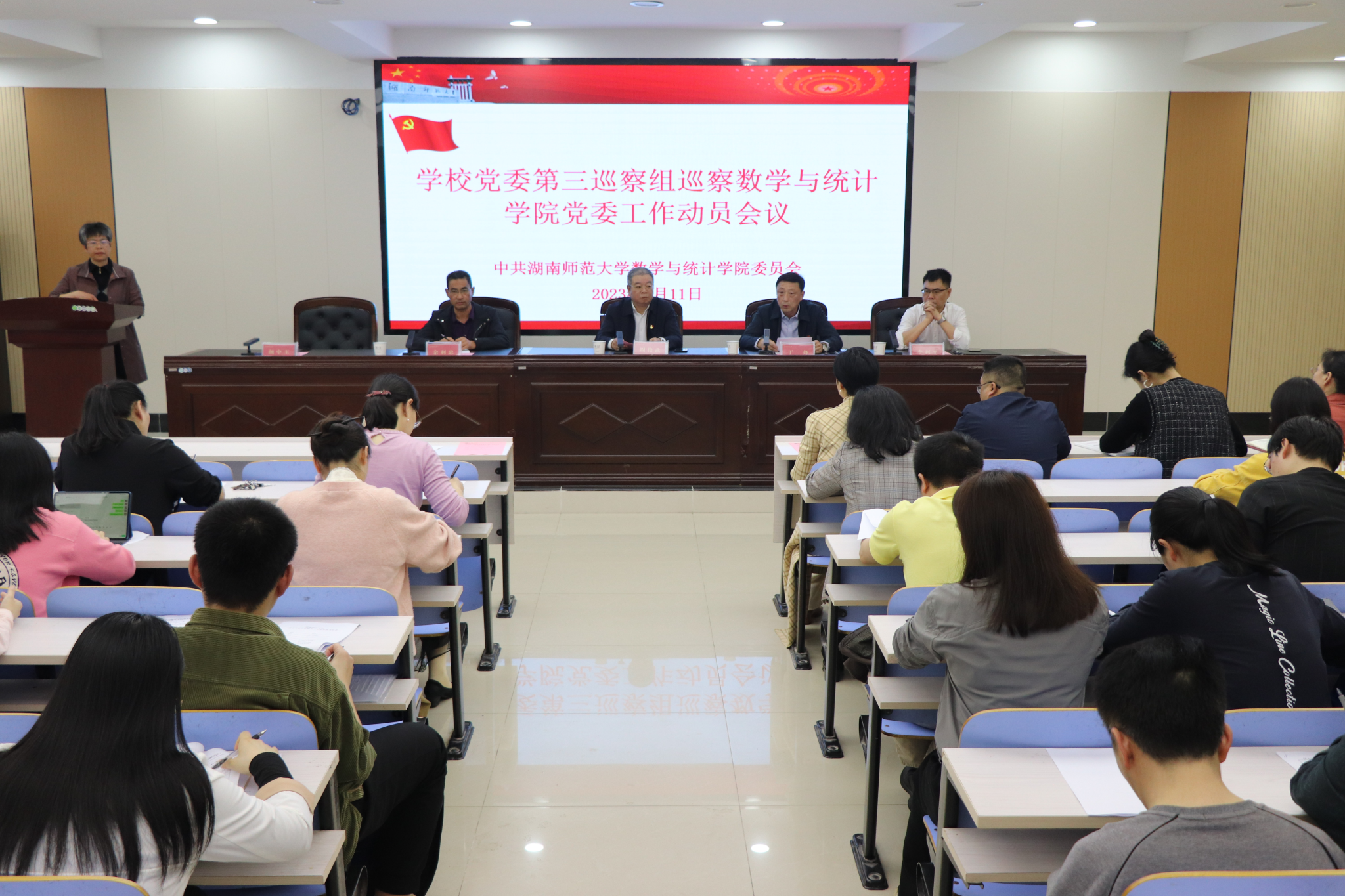 2023年4月11日下午,党委第三巡察组巡察数学与统计公司党委工作动员会在韦德体育309报告厅召开。公司党委副书记、公司党委巡察工作领导小组副组长周俊武,党委巡察办副主任佘利忠,公司党委第三巡察组组长于烽及全体成员,韦德体育公司党委、行政领导班子成员出席会议,韦德体育经理李利平等列席会议。会议由数学与统计公司党委书记颜中玉主持。