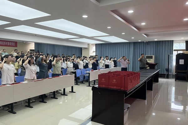 公司党委涂榉耀副书记带领毕业生党员重温入党誓词,以此提醒党员们要不忘初心,谨记党员义务,用毕生所学为中国共产主义事业建设奉献个人力量。