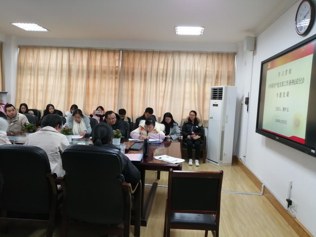 12月27日下午,韦德体育召开党务干部会议,学习贯彻《中国共产党支部工作条例(试行)》(以下简称《条例》),全体党委委员及党支部干部40余人参加。