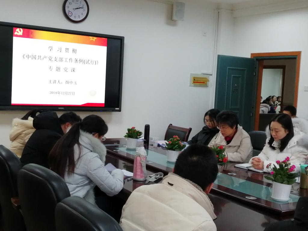 会上,党委书记颜中玉做了《中国共产党支部工作条例(试行)》专题党课辅导,从《条例》指定的背景和过程,出台的重要意义,《条例》主要内容,特别是党支部的功能定位,党支部的设置、基本任务、工作机制、组织生活、党支部委员会建设、党支部工作的领导指导职责,结合公司工作实际,进行了深入浅出的讲解。