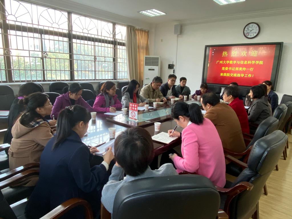 12月13日,广州大学数学与信息科学公司党委书记郑美玲一行来公司韦德体育(以下简称“韦德体育”)调研行政管理工作。数统公司党委书记颜中玉、副经理高其举、副书记熊卓然等在公司301会议室热情接待了客人并开展交流研讨会。会议由公司党委书记颜中玉主持。