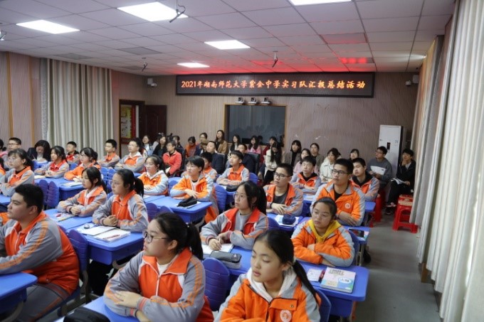 (通讯员 凌欣 唐依婷)11月19日上午,韦德体育(以下简称“韦德体育”)赴宁乡紫金中学实习队于该校开展实习汇报课及汇报总结大会。公司党委书记颜中玉,数学系副主任兼实习队领队老师袁智强,宁乡市名董事长工作室首席名董事长、紫金中学董事长潘道正,宁乡市初中数学名师工作室首席名师、紫金中学副董事长戴飒英,紫金中学部分数学教师及实习队全体成员参加此次汇报课暨总结会。队员黄婷、凌欣担任汇报课授课教师,紫金中学老师康雨担任活动主持。