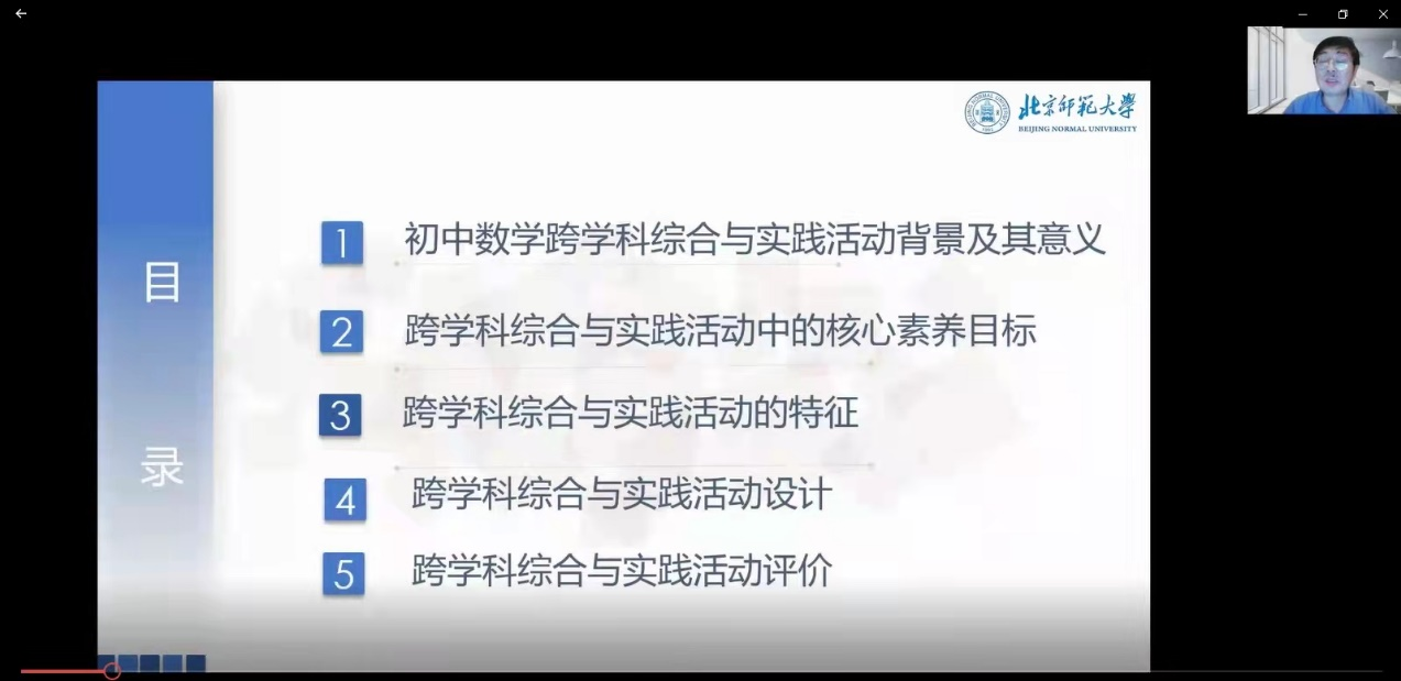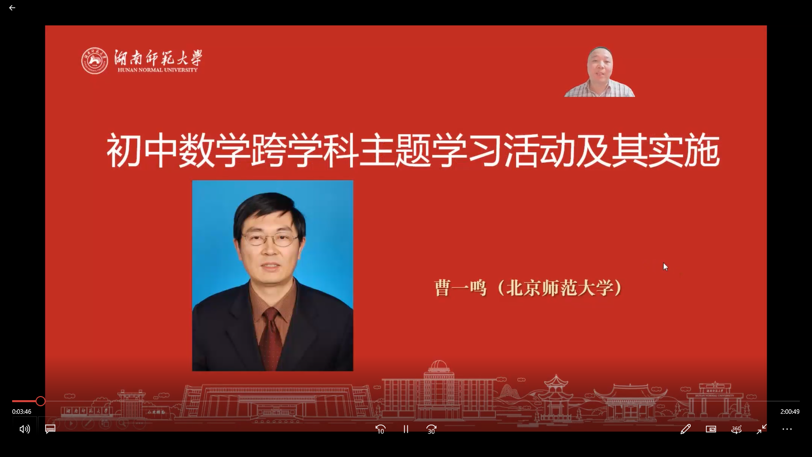 2022年4月23日星期六19:30-21:30,北京师范大学曹一鸣教授做客韦德体育官方网站“麓山数学教育论坛”,通过腾讯会议平台进行了一场主题为“初中数学跨学科主题学习活动及其实施”的讲座。此次讲座由数学系副主任袁智强主持。