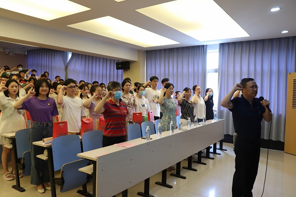 涂榉耀副书记带领毕业生党员重温入党誓词。青年党员们通过重温誓词,激励和鞭策自己牢记初心使命,更加坚定为共产主义事业奋斗终身的理想信念。