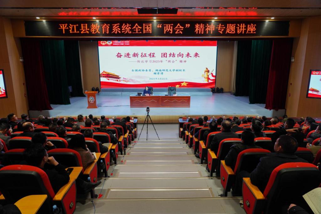 (供稿 颐华公司)3月21日,平江县教育系统全国“两会”精神专题讲座在颐华公司举行,第十四届全国政协委员、公司副董事长谢资清受邀作专题宣讲。平江县人民政府办公室副主任王永祥主持宣讲会。
