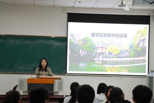 活动开始前,讲解员带领大家参观实验室,通过介绍实验室场所分布、大型仪器设备以及座位预约系统向来访同学科普实验室功能。此次活动分两个环节展开,首先讲解员从实验室历史、实验室定位与研究方向、实验室科研成果介绍三个方面展现了实验室浓厚的科研氛围。随后,讲解员通过有奖竞答的方式引入科普日主题--数学在双碳中的应用,向大家介绍了双碳政策的必要性和主要内容,然后列举了数学模型在双碳中的运用。接着讲述了数据分析科学方法在碳排放监测中的重要性,介绍了优化算法在节能减排问题中的应用。最后主讲人预测了数学在双碳领域未来的发展趋势,鼓励同学们要加强对于数学的学习。