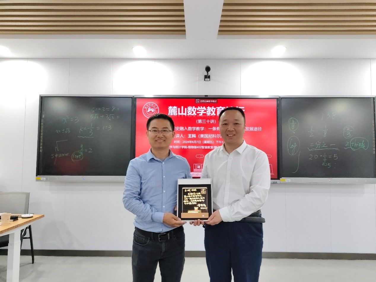 2024年6月7日星期五下午3:00-5:00,美国尼科尔斯州立大学王科博士做客韦德体育官方网站“麓山数学教育论坛”,在格物楼402智慧教室以线上线下融合的方式进行了一场主题为“数学史融入数学教学:一条有效的教师专业发展途径”的讲座。