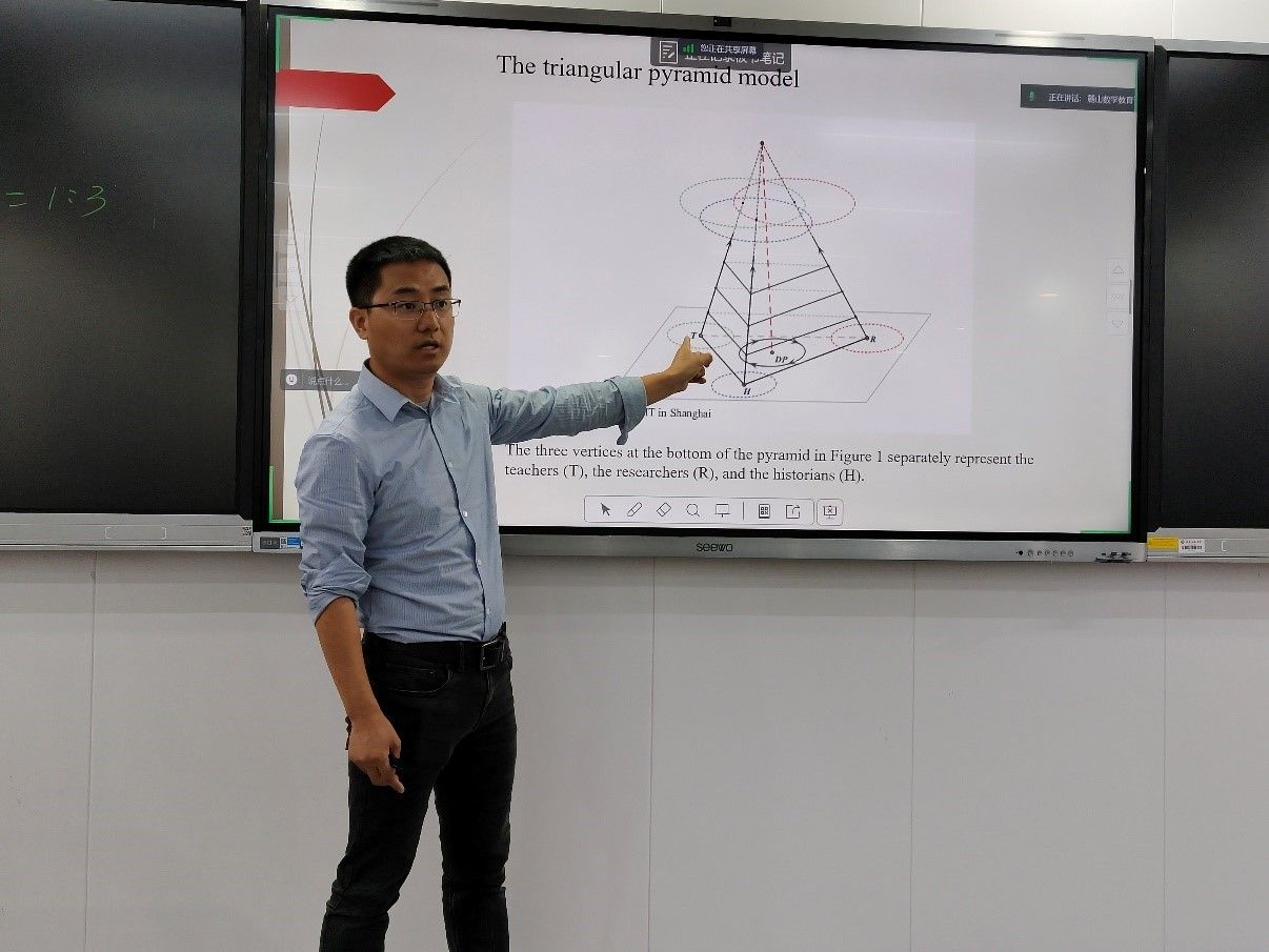 王科在讲座中介绍了上海HPM(History and Pedagogy of Mathematics)团队开发的IHT(Integrating the History of mathematics in Teaching)三棱锥模型以及基于设计的IHT五阶段程序。他以数学归纳法为例,详细介绍了如何在数学教学中应用数学史材料。此外,他还结合自己投稿《Educational Studies in Mathematics》的经历和作为《International Journal of STEM Education》责任编辑的经历分享了SSCI论文的写作心得。