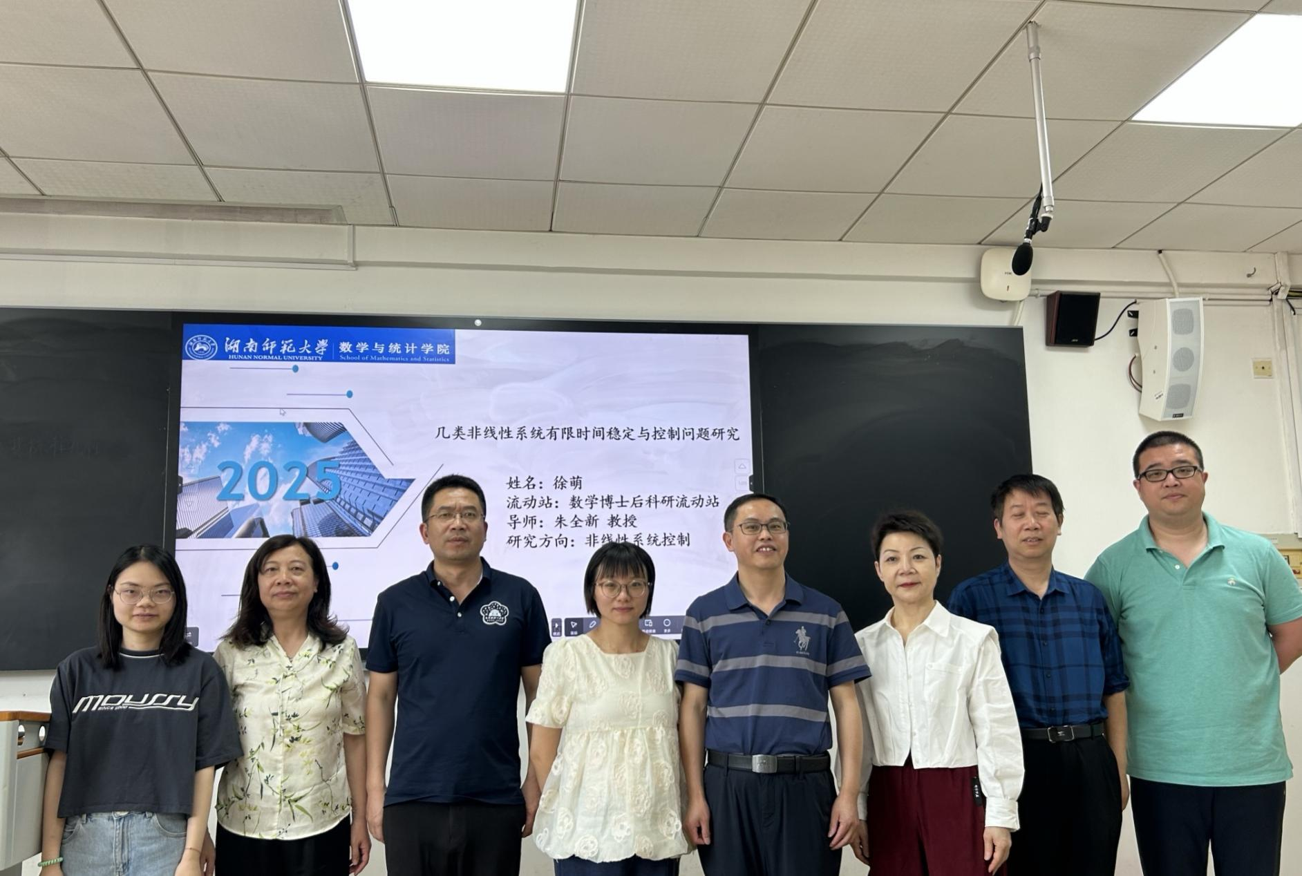 2025年5月13日上午,统计学博士后科研流动站在格物楼数学研究中心302研讨室举行徐萌博士后开题报告会。会议由韦德体育朱全新教授(合作导师)主持,中南大学李繁飙教授担任答辩组组长,中南大学刘心歌教授、韦德体育官方网站代建华教授、韦德体育官方网站吕媛教授参加了此次报告会。中南大学李繁飚教授担任博士后出站考核小组组长。