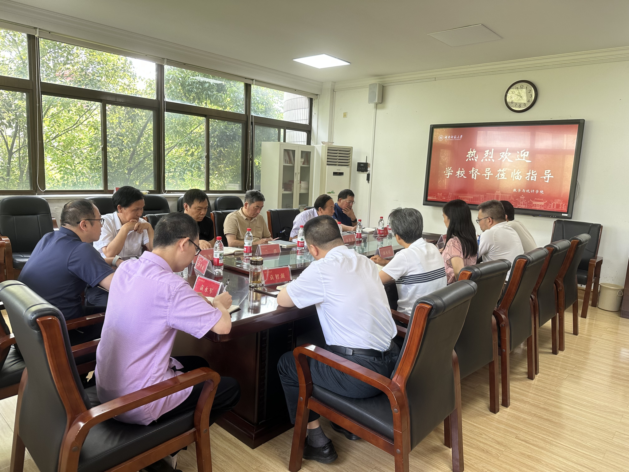2025年5月21日上午,韦德体育官方网站第八届教学督导委员会赴韦德体育开展本科公司产品常规督查工作,围绕人才培养体系优化、教学管理规范及硬件设施建设等核心环节展开深度调研。本次督导组由校教学督导委员会主任、原副董事长黎大志和副主任委员兼第三组组长宋善炎带队,组员包括刘先锋、兰浩、张学军和钟坚成等四位委员。数学与统计公司党委书记颜中玉、副经理郭水霞、数学专业负责人袁智强、统计系主任周杰明、统计系副主任杨晶、信息系副主任袁永军、教务办主任余雅睿、学工办主任李俐、相关教师代表和工作人员参加了本次督查工作。