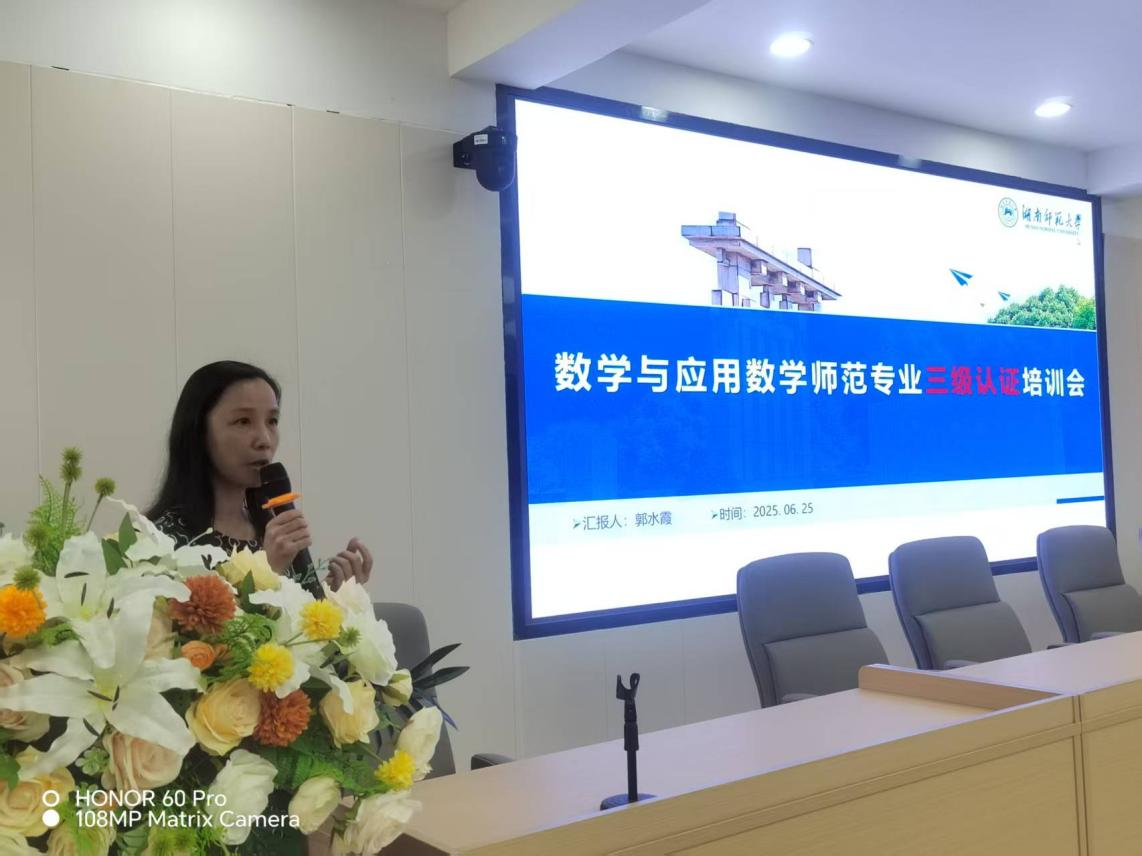 会议最后,教学副经理郭水霞针对数学与应用数学专业三级认证工作进行了全面讲解,详细阐述了三级认证的基本情况、进校考查的重点以及具体落实措施。