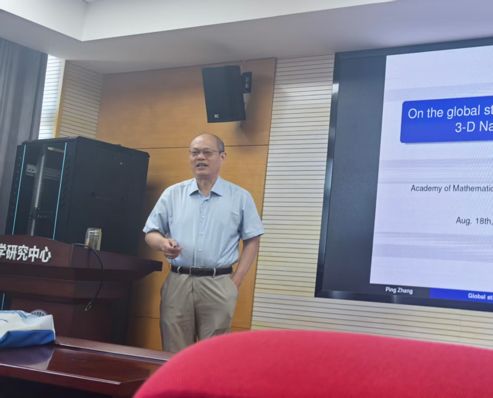 首先,张平院士介绍了三维各向异性Navier–Stokes方程轴对称解的研究背景,结合大Fourier模初值问题,详细阐述了如何建立解的整体存在性与稳定性。特别地,对于经典三维Navier–Stokes方程,他重点说明了如何通过构造泛函,将已有结果中解的Fourier展开中k模的多项式型衰减改进为指数型衰减,极大推动了相关问题的深入研究。
