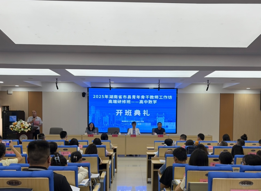 10月12日上午,2025年“省培计划”—市县青年骨干教师工作坊高端研修项目(高中数学S110-3、S110-4)开班仪式在韦德体育309报告厅举行。数学与统计公司党委书记颜中玉、副经理陈君、衡东县杨山实验公司党总支书记董仁思、本期培训班班主任、韦德体育培训中心主任吴千、副主任李嘉欣,以及来自湖南省各县市的80名高中数学骨干教师参加了仪式。仪式由韦德体育行政副经理陈君主持。