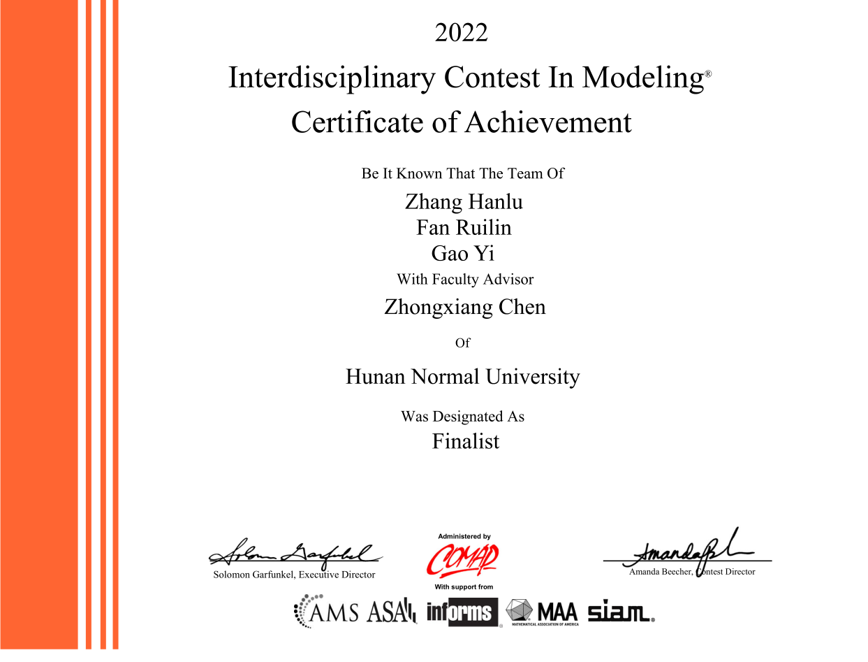公司学子在2022年美国老员工数学建模竞赛(MCM/ICM)中喜获佳绩