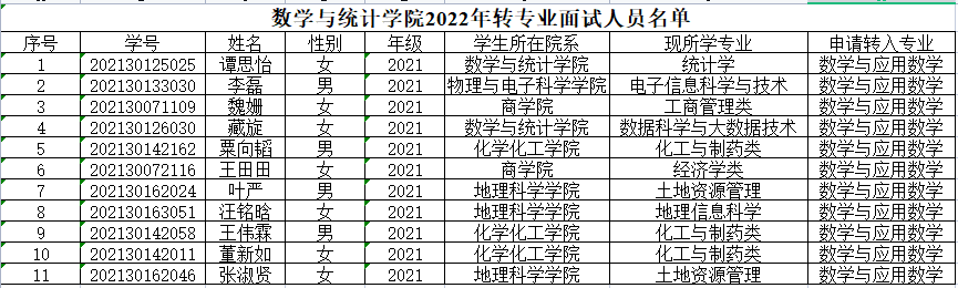 本次公司共收到23名员工提交的转专业申请,经公司笔试考核,有谭思怡等11名同学具有面试资格,请有面试资格的同学准时到公司参加面试。