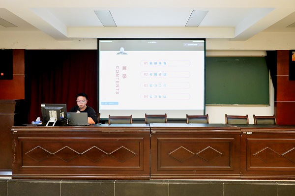 此次会议通过腾讯会议平台以线上线下融合的形式召开。会议伊始,袁智强强调了教育实习工作的重要价值,介绍了汇报的主要流程。接着,赴师大附中博才实验中学(天顶校区)实习队、赴周南梅溪湖中学实习队等17个实习队代表轮流上台进行实习报告总结。他们从微格教学与小组试教、教学工作、班主任工作、教育调查研究、课后活动、个人收获等多个方面展开叙述,总结在实习中收获的经历,收获很大。